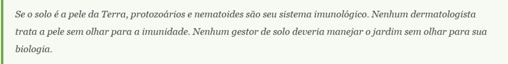 Imagine uma mudança simples: ao invés de R$ 5 mil por ano em NPK, herbicidas e fungicidas, o condomínio investe R$ 2 mil em composto biocompleto (ou instala composteira coletiva com resíduos dos moradores) e R$ 800 em análise microscópica anual, serviço já disponível no Brasil por consultores formados na metodologia Soil Food Web.