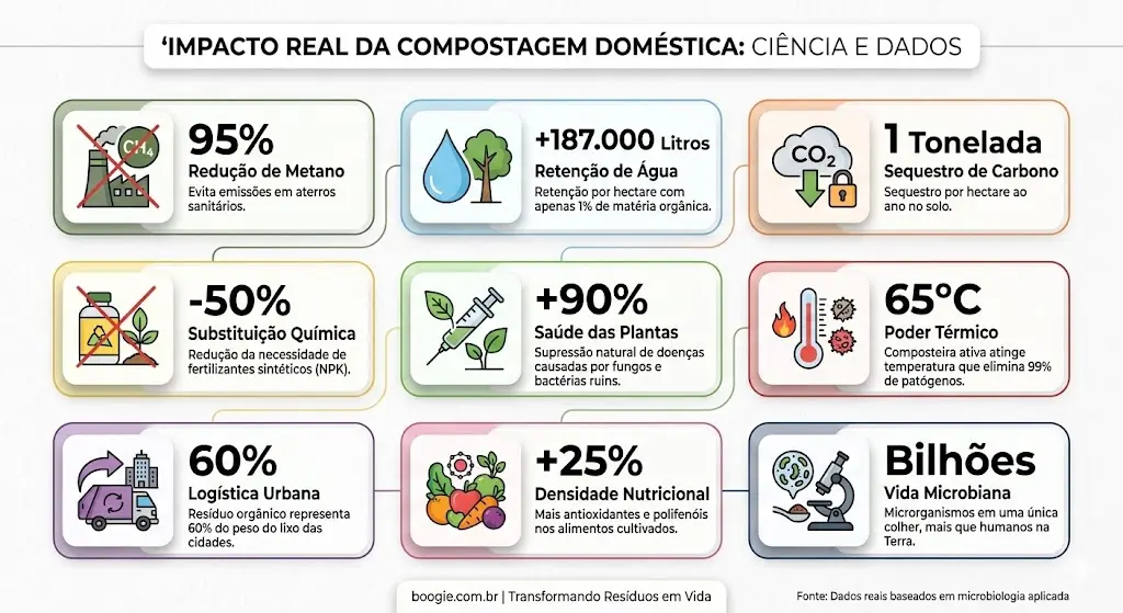 Cerca de 50% do lixo doméstico brasileiro é orgânico. Ao compostar, você reduz drasticamente as emissões de metano nos aterros sanitários e transforma o seu CEP em um ponto de regeneração ambiental. No boogie.com.br, tratamos cada resíduo não como um problema de descarte, mas como um ativo biológico de alto valor para o futuro das cidades.