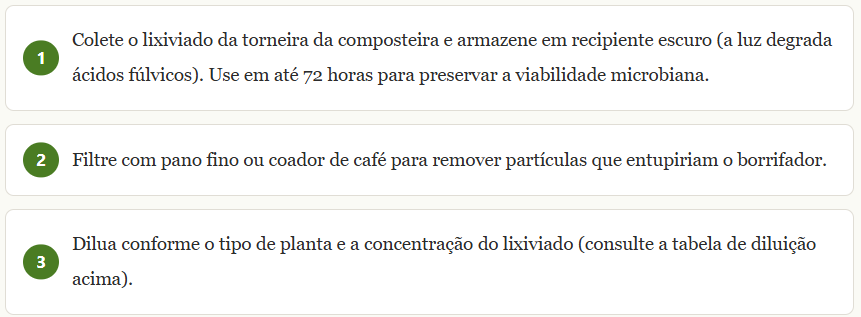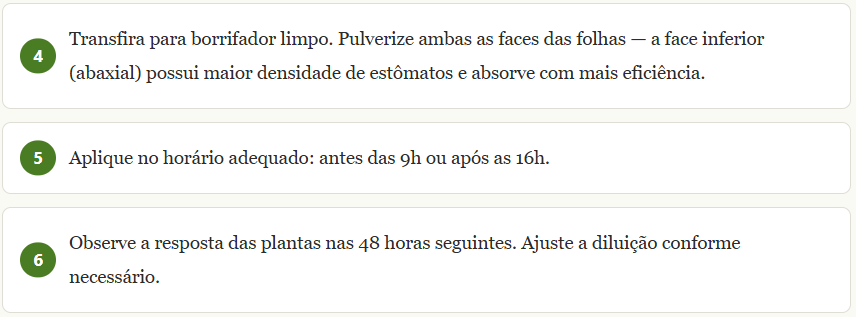 Protocolo completo de aplicação foliar com lixiviado de vermicomposto