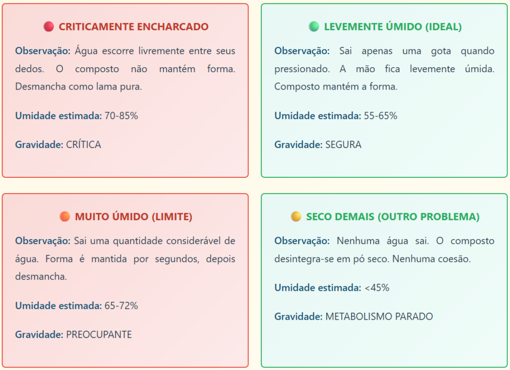 Umidade Crítica: 65% – acima deste limite, a porosidade estrutural colapsa e a anaerobiose começa em horas, não dias